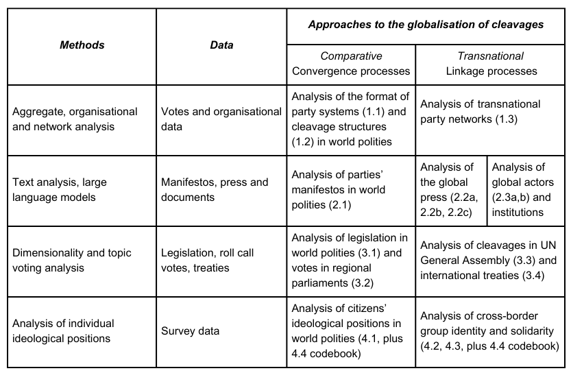 - WP1: national and regional party and cleavage systems, global networks and transnational parties;